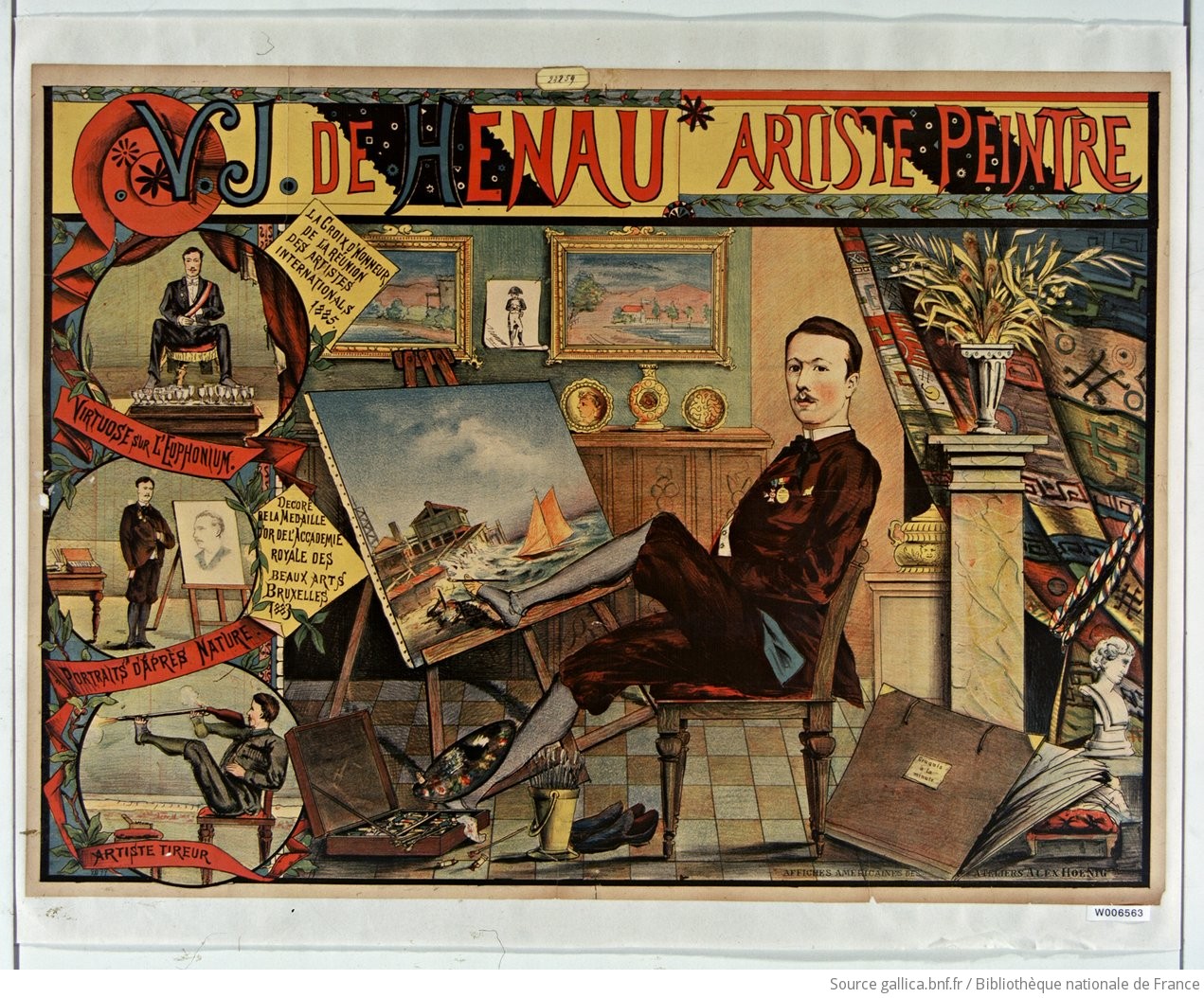 Titre(s) : V. J. De Henau : artiste peintre... décoré de la médaille d'or de l'Académie Royale des Beaux Arts Bruxelles... [Image fixe] : [affiche] / [non identifié]