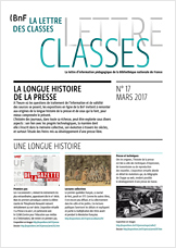 La lettre des classes BnF est un bulletin de liaison qui vous informe sur les derniers dossiers pédagogiques et expositions virtuelles mis en ligne sur le site de la Bibliothèque nationale de France.