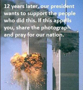 Twin-TowersIf the photograph on the left is any indication, then the answer is yes! Why then does the President of the United States want to support an Al Qaeda-infested rebel force seeking to overthrow President Bashar al-Assad‘s Syria? It doesn’t matter that Assad is evil, Al Qaeda is OUR enemy and if we do anything to support them, it’s an act of treason.