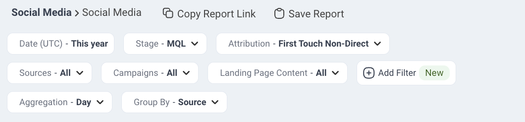 Value: The amount of revenue than is attributed to the Social Media based on your selected filters