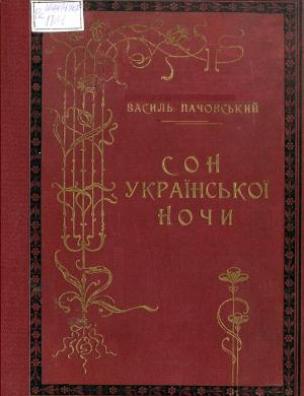 Сон української ночі [Електронна копія] : трагедія / Василь Пачовський. Електрон. текст. дані (1 файл : 207 Мб). Львів : Накладом Михайла Петрицького, 1903 (Київ: НБУ ім. Ярослава Мудрого, 2018).