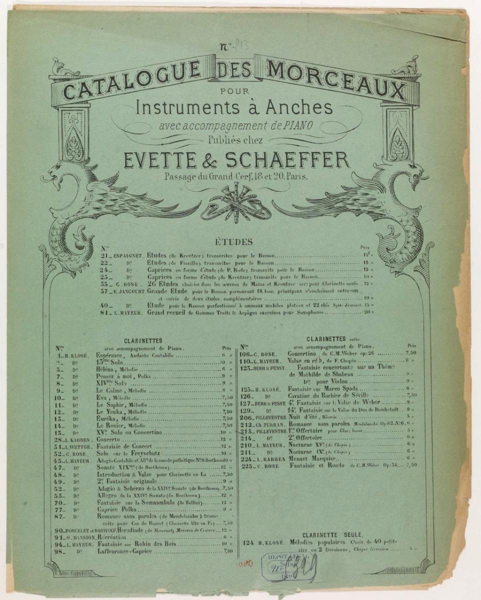 Paul Evette and Ernest Schaeffer bought Buffet Crampon & Cie, a company that manufactured musical instruments, mainly clarinets and saxophones. Evette & Schaeffer is also a publisher of classical music.