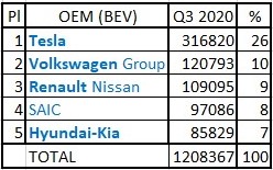 The disruption is even more visible here, with only Renault-Nissan on the Top 5, and Tesla winning even more easily.