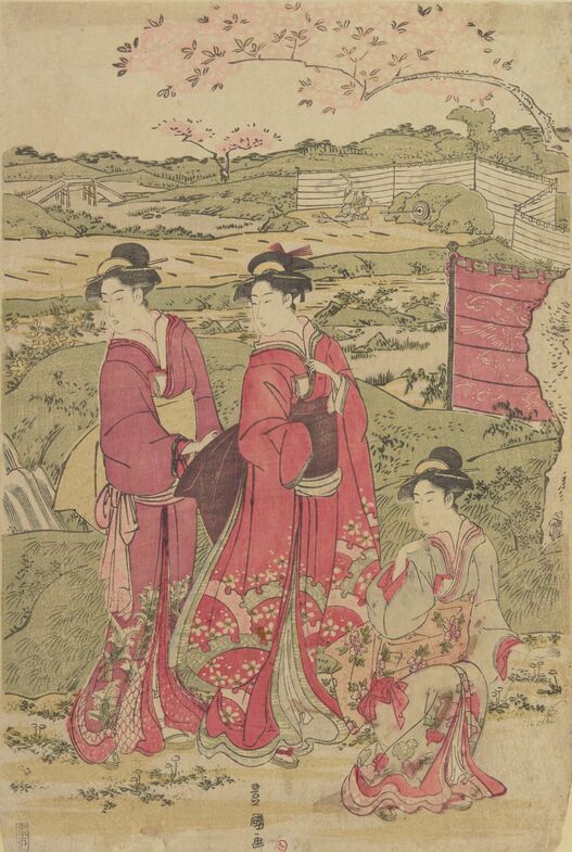 [Admirer les cerisiers en fleurs à l'extrémité du jardin] : [estampe] / [Toyokuni a peint], 1789-1800