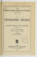 Premier Congrès mondial de psychiatrie, Paris, 1950 : comptes rendus des séances