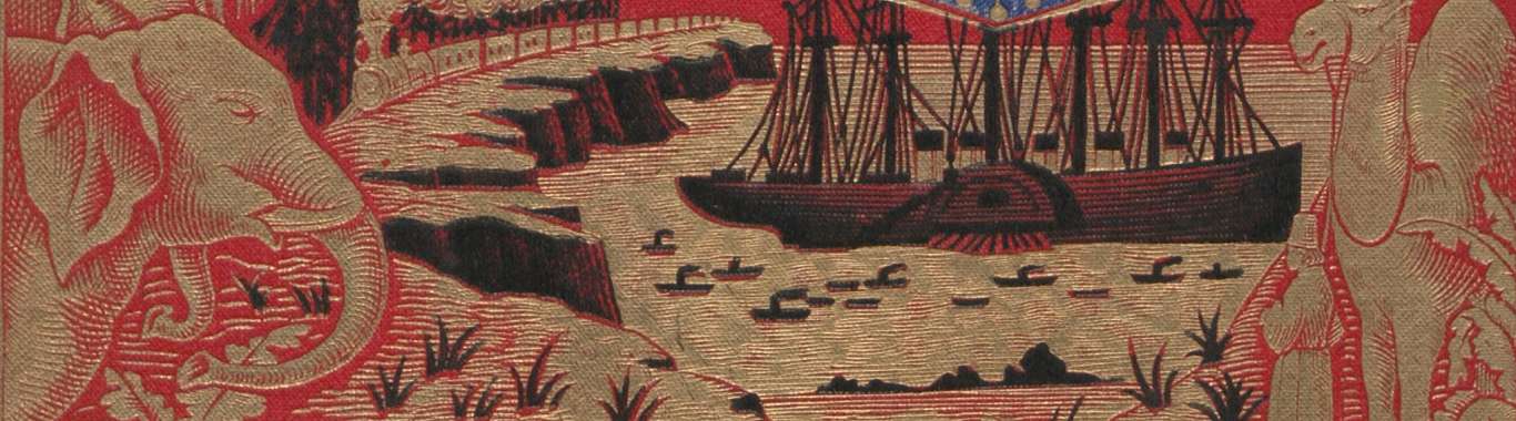 Voici quelques exemples de cartonnages pour les « Voyages extraordinaires » : cartonnages à la bannière bleue ou argentée, à l’éléphant, aux deux éléphants, au portrait, au globe doré, au dos à l’ancre, etc.