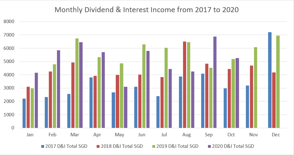 Total dividend and interest from my investment portfolio + bank/money market account + trading gain/loss generated in Nov2020 SGD$1333