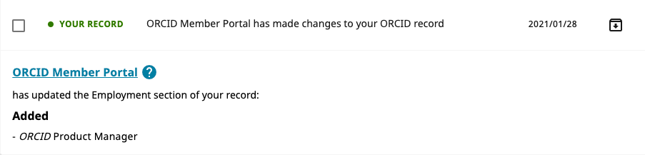 Items (works, employment, funding, peer review etc) can be added to an ORCID record either manually or using the ORCID member API. If you are an individual looking to update your record check out our help section on this here. If you are a member looking to add items to an ORCID record, you will need the following: