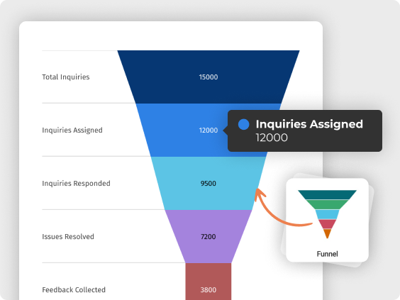 Easily create funnel charts to show how data moves through each stage of a process or project.