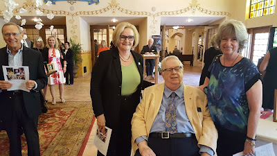 | Dem Chair Lonnie Shalton, James B Nutter and world traveller Rita Leifhelm--last summer at the services for Hila B "Dutch" Newman. |