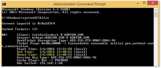 Figure 5: My Kerberos ticket is only good for about 8 minutes because of my soon-to-expire group membership.