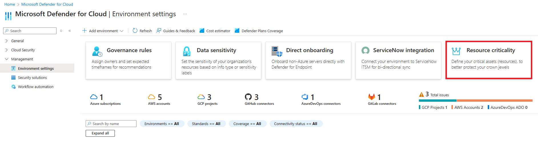 Critical asset rules are bi-directionally synced with Microsoft Security Exposure Management - rules that were created in Microsoft Security Exposure Management are synced to Defender for Cloud, and vice versa. Learn more about critical assets protection in Microsoft Security Exposure Management.