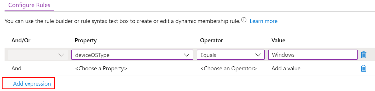 Select Add expression. Your expression is shown in the Rule syntax: