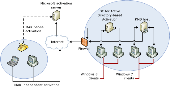 Some networks are in a different physical location from the central network. You may need to use a combination of Active Directory-based Activation, KMS hosts, and MAK activation to meet the requirements of the branch office network scenario.
