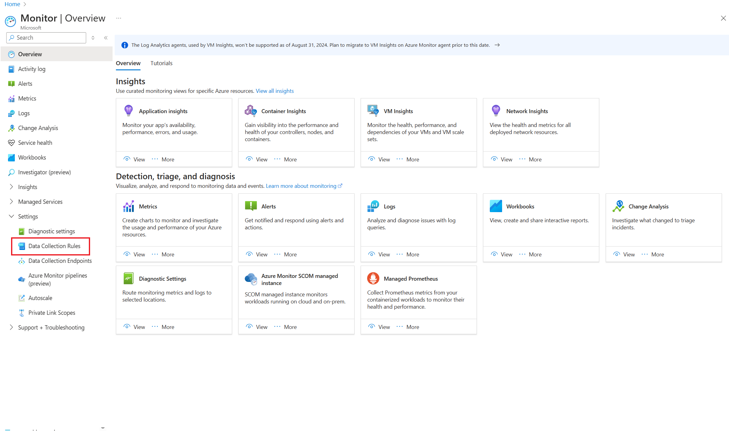 Azure Monitoring Agent の変更履歴スキーマを使用してデータ収集ルール (DCR) を作成した後、このルールにデータ ソースを追加しないようにします。 これにより、変更履歴とインベントリが失敗する可能性があります。 このセクションでは、新しいリソースのみを追加する必要があります。
