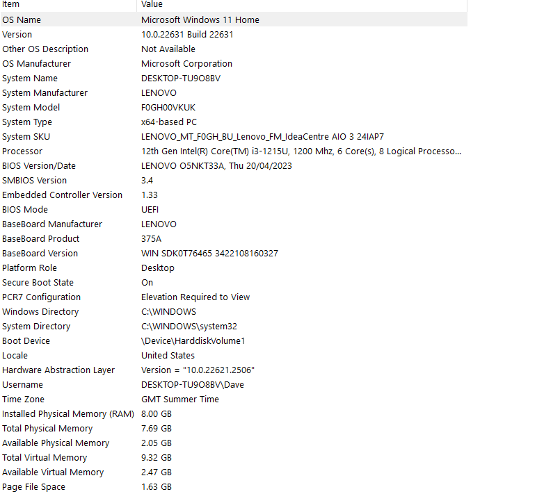 If you click your Start button, then just type msinfo and press Enter, a window like the one shown below should open, that is the screenshot I need: