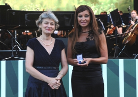 On August 13, 2004, Mehriban Aliyeva was awarded the title of a Goodwill Ambassador of UNESCO for her tireless efforts towards protection and development of Azerbaijan's verbal folk literature and music heritage. On September 9, 2004, a ceremony of awarding Mehriban Aliyeva the title of a Goodwill Ambassador of UNESCO took place at the organization’s headquarters. |