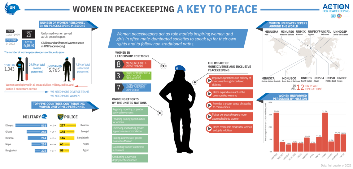 Visit our gender statistics section for a breakdown of male and female uniformed personnel working in missions.