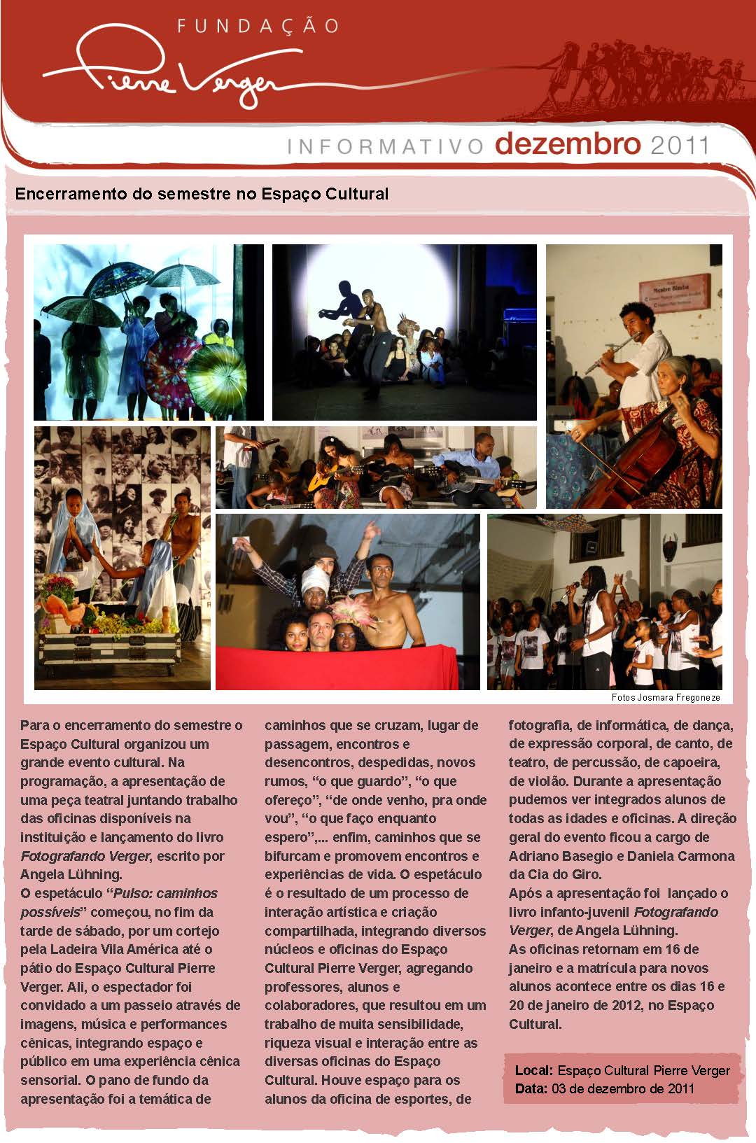 A Fundação Pierre Verger publica bimestralmente o seu Boletim Informativo, no qual relata as atividades desenvolvidas pela instituição, bem como os diversos eventos ocorridos sobre Pierre Verger ou sobre sua obra. Neste site, estão disponíveis para visualização e download todos os Boletins produzidos, desde 2010.