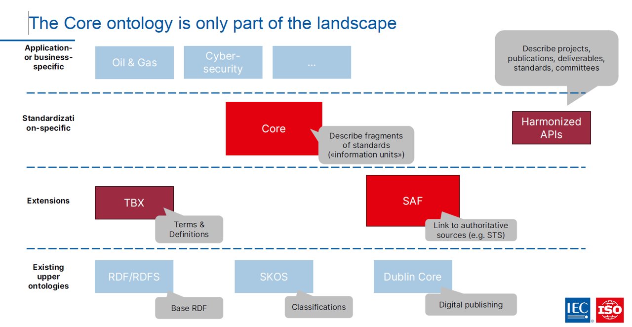 Lors de la première ISO IEC SMART Conférence fin 2024, l’ISO et l’IEC ont présenté la Core Ontology, une fondation clé visant à établir une ontologie partagée associée aux contenus normatifs. Son objectif principal est de favoriser l’interopérabilité entre ces contenus.