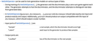 Wolfram Language. (2020). NetGANOperator. Wolfram Language & System Documentation Center. Retrieved from https://reference.wolfram.com/language/ref/NetGANOperator.html