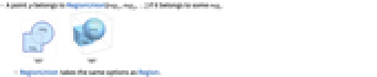 - A point p belongs to RegionUnion[reg1,reg2,…] if it belongs to some regi.