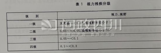 宜宾市翠屏区残疾人联合会回复:根据中华人民共和国残疾人残疾分类和分级标准,视力残疾均以双眼而言,若双眼视力不同,则以视力较好的一眼为准。如果仅有单眼为视力残疾,而另一眼的视力达到或优于0.3则不属于视力残疾的范畴。具体分级见图片。