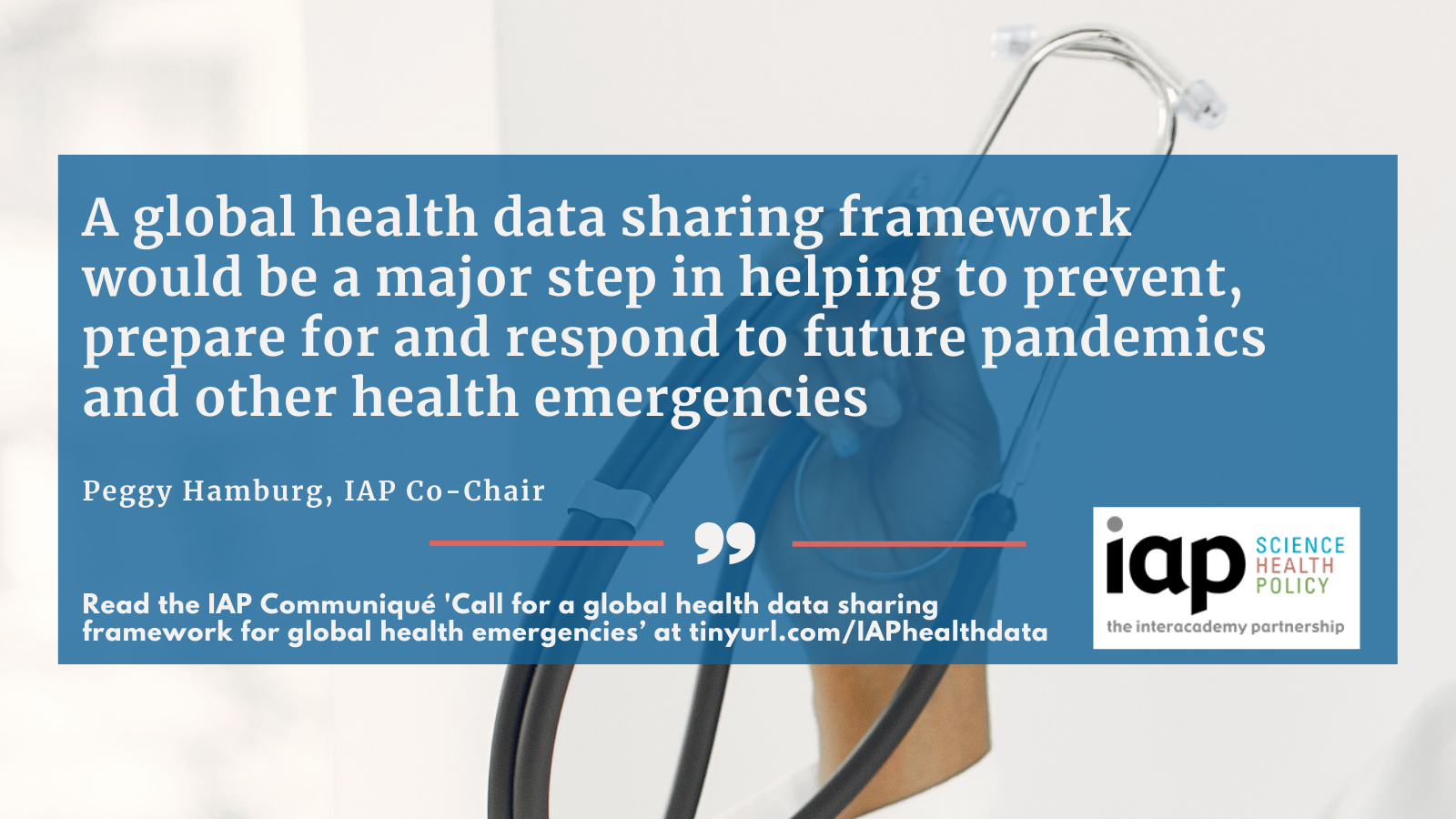The IAP communiqué ‘Call for a global health data sharing framework for global health emergencies’ discusses the governance, operational considerations and skills required for such a framework to work to the benefit of all. Read it here.