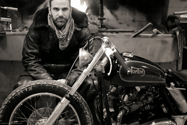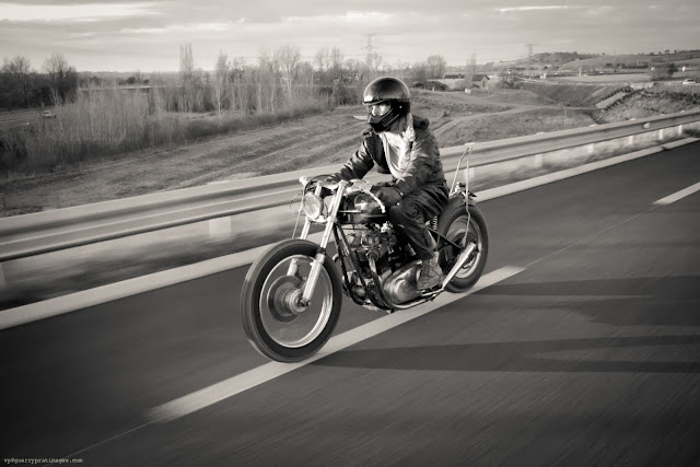 Like so many others I would go off driving, break down, repair the problem, find another…. During one and a half years our relationship was up and down: full of joys and despair, numerous frustrations, desire to abandon the project, then start it again. During this time I would visit the Southsiders garage, where I witnessed several other exciting projects: the beautiful realisation of Florent’s Café Racer, the preparation of Vincent’s Triton for Bonneville 2012, the finishing touches for the electrics and last details on the Bobber Triumph of Christophe Canitrot …I realise today that it was that period, so rich in apprenticeships: (mechanics,design, forging, electrics, painting, etc), which pushed me to make my Norton project so much better, and to have such an ambitious goal. Compare a stock version of the HiRider to that which I have accomplished, and you'll see how far I have gone.