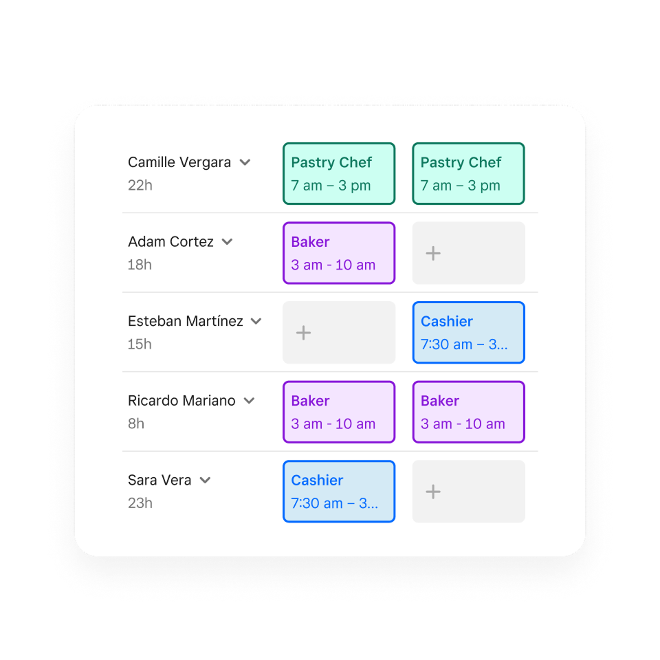 Onboard and communicate with your team, create schedules, and track hours. Save on time and labor costs by simplifying payroll and taxes.
