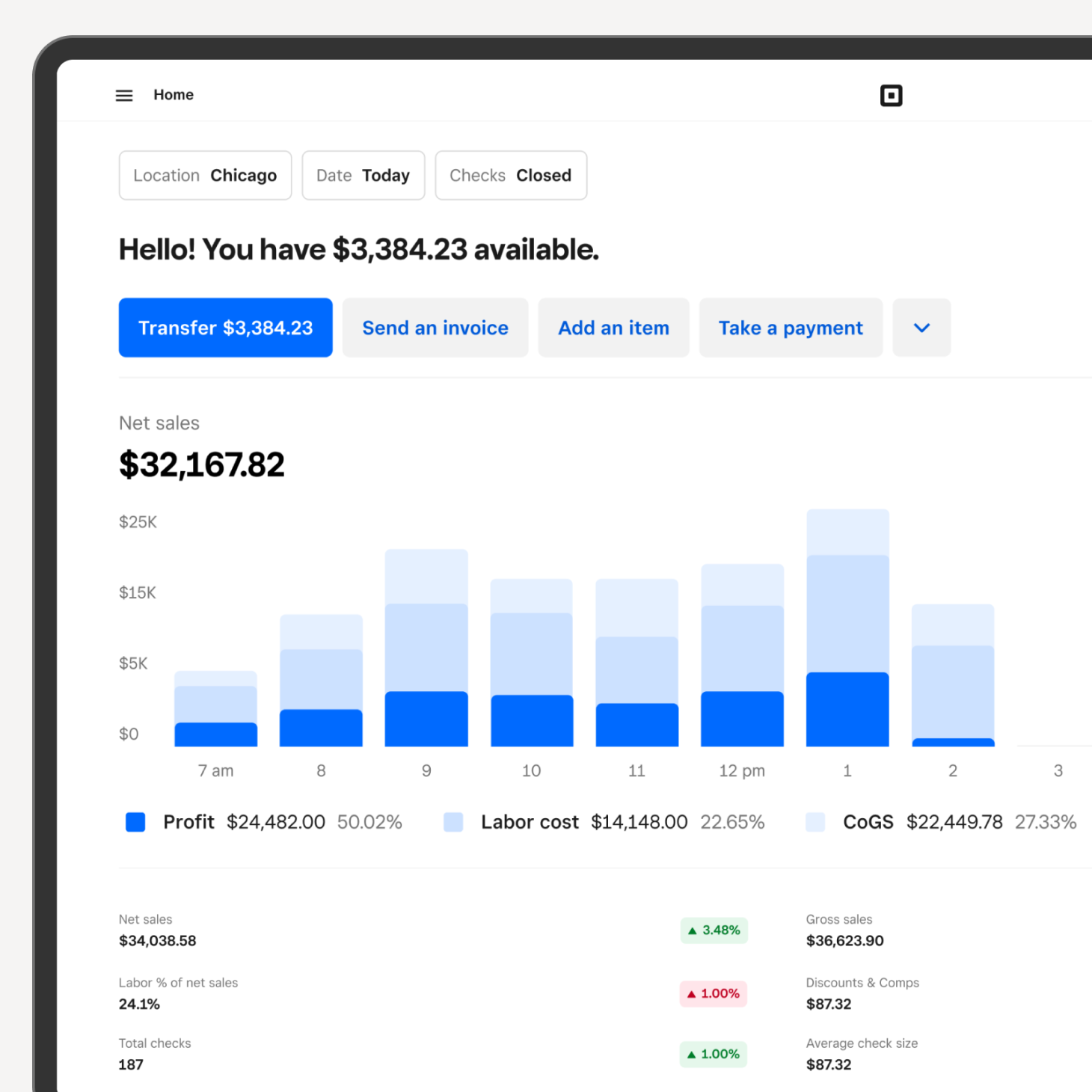 Turn your sales into savings so you're prepared for the unexpected, like oven repairs or equipment replacement. Use banking2 solutions like loans3 and instant transfers4 to manage your cash flow and help you squeeze more profit out of thin margins.