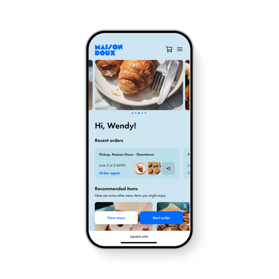 Square’s POS system for bakeries includes online ordering, which lets customers browse your menu, place orders in advance, and choose how they'd like to receive them. All orders sync with your POS in real time, making it easy to manage everything from one place.