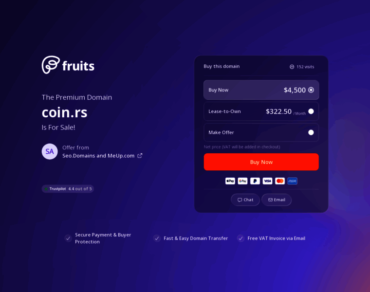 The premium domain coin.rs is for sale on fruits.co. Secure the domain now and start your online success story. Safe payment and quick transfer are guaranteed.