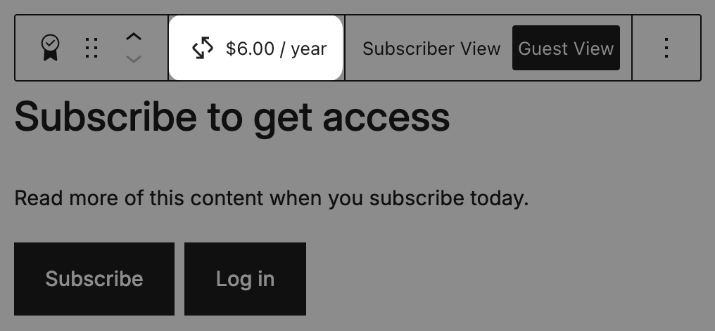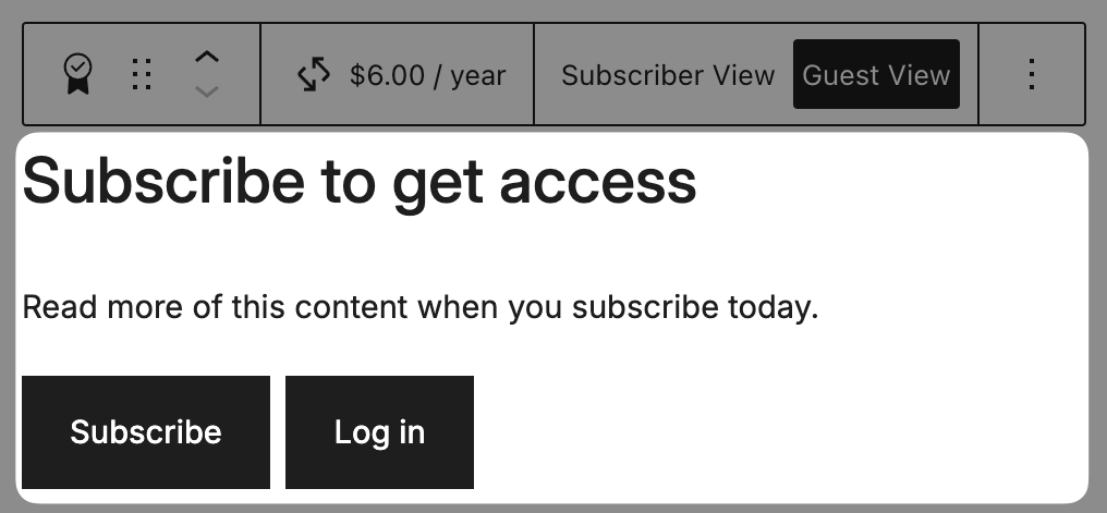 بشكل افتراضي، ينبغي أن ترى مكوِّن أزرار المحتوى المميز في “طريقة عرض الضيوف”. تسمح هذه الأزرار لزائريك بالاشتراك في المحتوى أو تسجيل الدخول إلى حسابهم إذا كانوا مشتركين بالفعل.