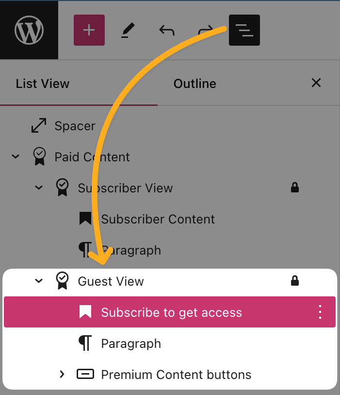 ستظهر المكوِّنات المضمنة تحت “طريقة عرض الضيوف” في طريقة عرض القائمة للزائرين الذين لا يمكنهم الوصول إلى المحتوى المدفوع.