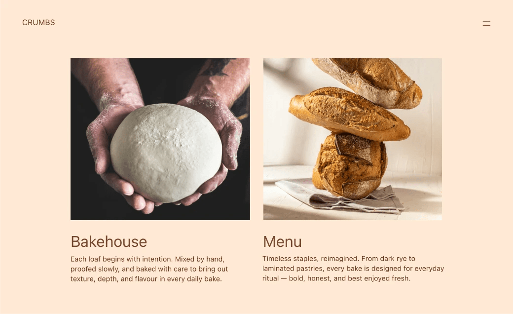Crea un sito accogliente e invitante per la mia pasticceria artigianale con un’allure rustica, toni crema e dorati e un’elegante tipografia serif.