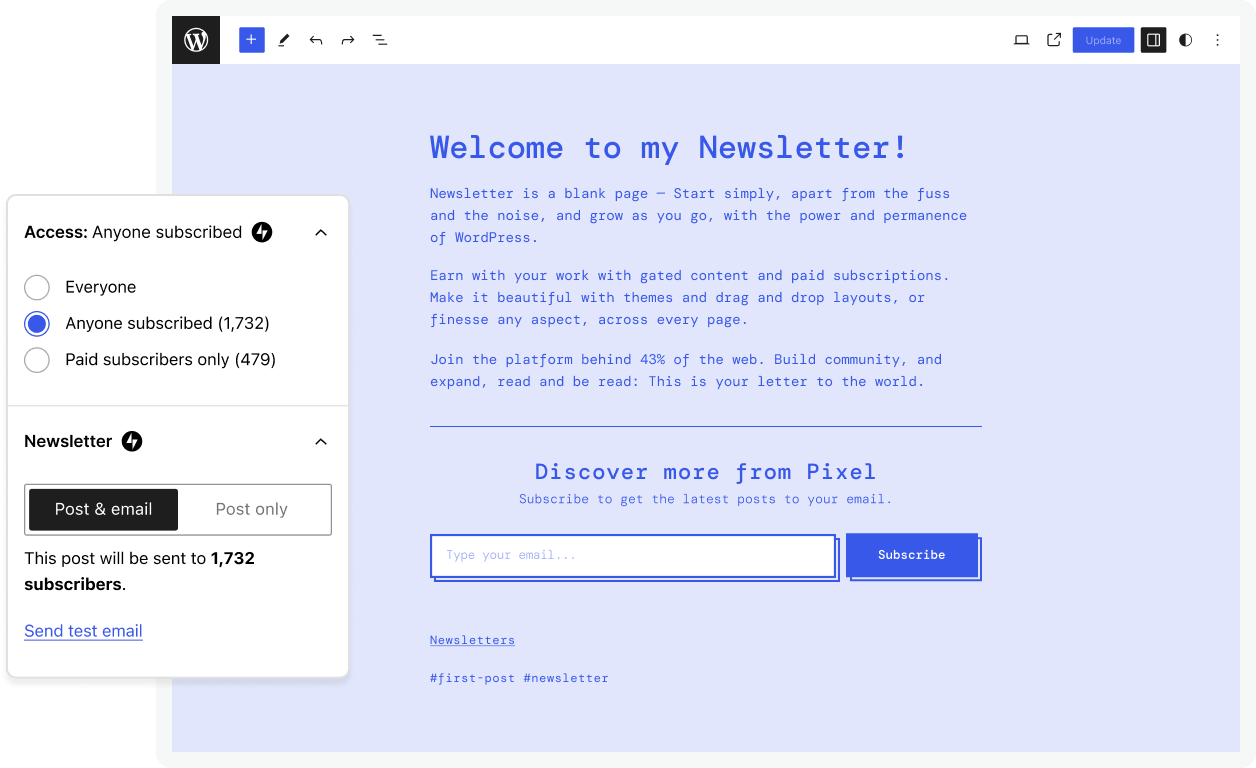 Förvandla dina inlägg till e-postmeddelanden utan ansträngning med vår kraftfulla nyhetsbrevsfunktion. Utöka din räckvidd, engagera din publik och tjäna pengar på ditt skrivande utan ansträngning. Ingen kodning krävs.
