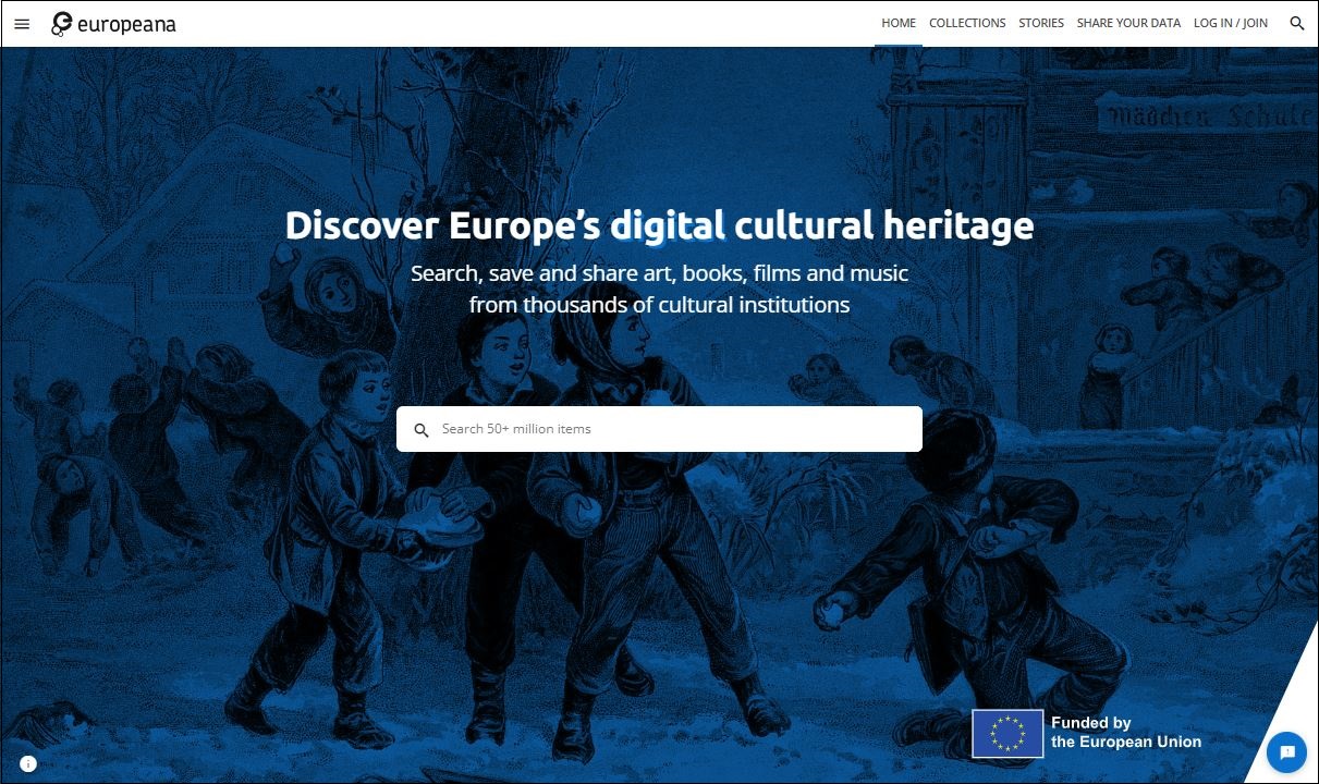 Europeana enables the discovery, reuse and sharing of the digitised heritage collections of 3,700 libraries, archives, museums and audiovisual institutes, including books, manuscripts, photographs, engravings, paintings, television broadcasts, films, sculptures, objects, music sheets and sound recordings.