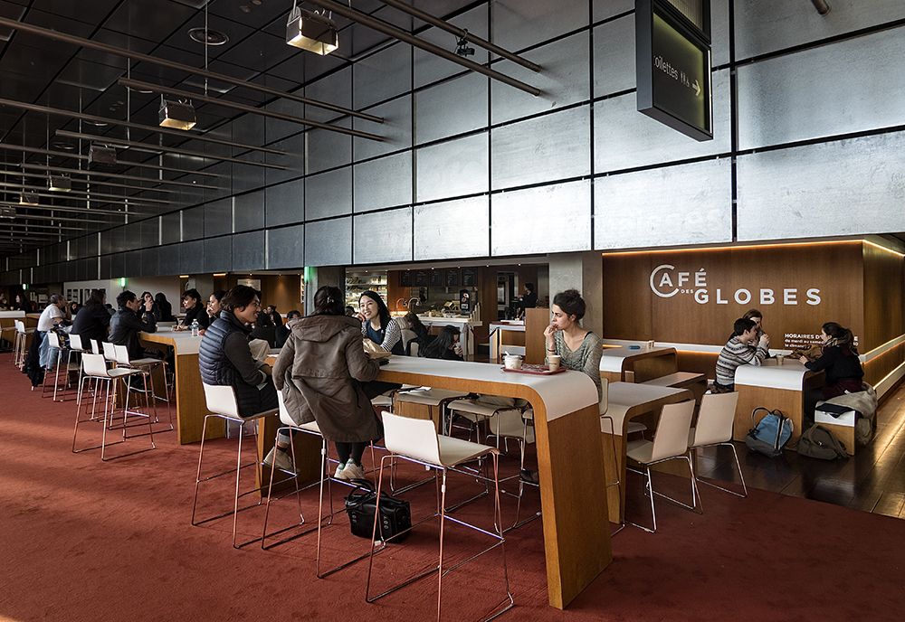 Le café des Globes (hall Ouest) est ouvert du mardi au samedi de 10 h à 18 h 30 et le dimanche de 13 h à 18 h 30. Cet espace propose une offre de restauration rapide variée. Salades composées, sandwichs, recettes de saison, boissons chaudes et fraîches. Assis confortablement, profitez d’une pause à toute heure. Aux beaux jours, découvrez la terrasse extérieure du café avec vue sur la BnF !