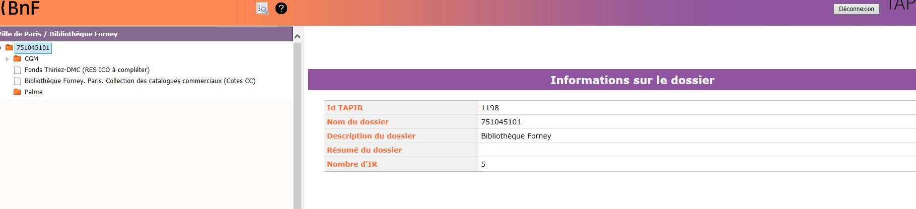 TapIR (Traitement Automatisé pour la Production d’Instruments de Recherche) est un outil de production et de publication qui permet la mise en ligne des inventaires d’archives et manuscrits sur le Catalogue général des Manuscrits (CGM) du CCFr, et aussi des notices descriptives du Répertoire de Fonds.