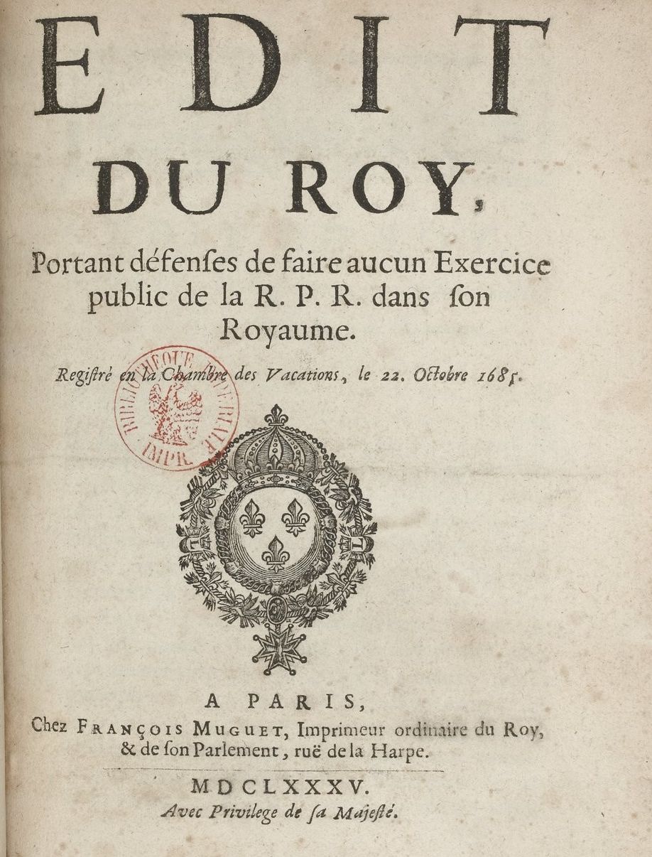 Révocation de l’Edit de Nantes par Louis XIV, 1685