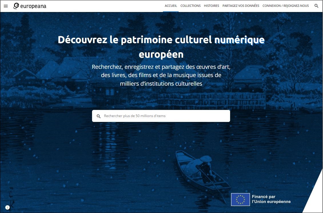 Europeana permet de découvrir, partager et utiliser parmi les collections patrimoniales numérisées de 3 700 bibliothèques, archives, musées et instituts audiovisuels : livres, manuscrits, photographies, gravures, tableaux, émissions de télévision, films, sculptures, objets, partitions, enregistrements sonores…