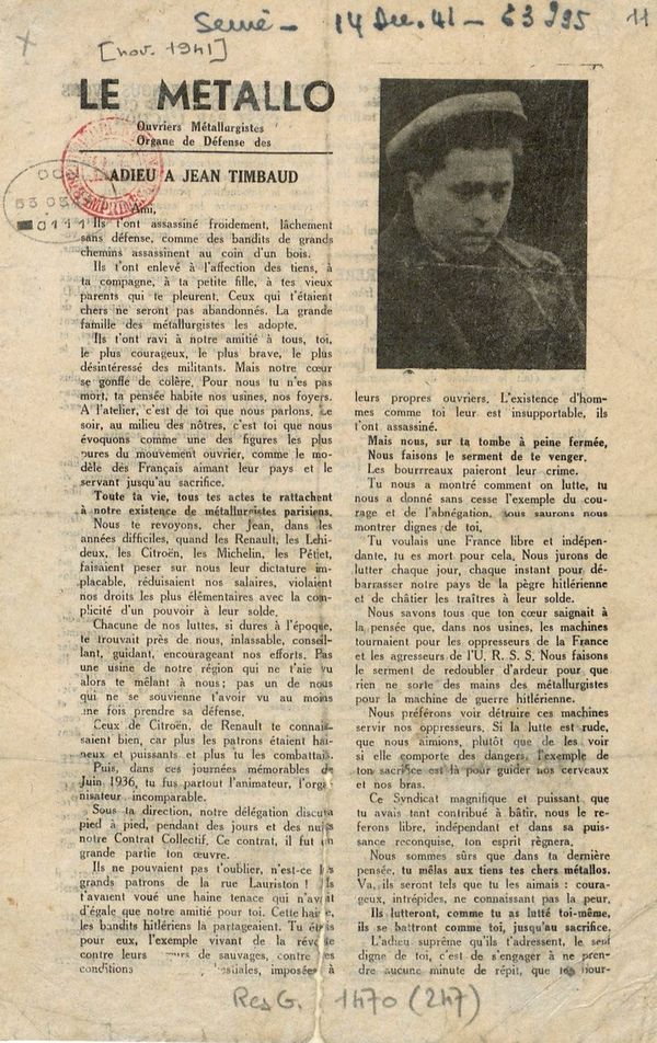 Témoin privilégié de la diversité des affinités idéologiques qui composent la Résistance, la presse clandestine rappelle aussi l’importance à cette époque des corporations professionnelles dans les débats d’opinion : Le Métallo, le journal de l’Union syndicale des travailleurs métallurgistes, L’Electro, organe du Comité populaire des monteurs-électriciens en bâtiment, L’imprimerie au combat, ou Le livre résistant, en sont quelques exemples, parmi tant d’autres à parcourir.