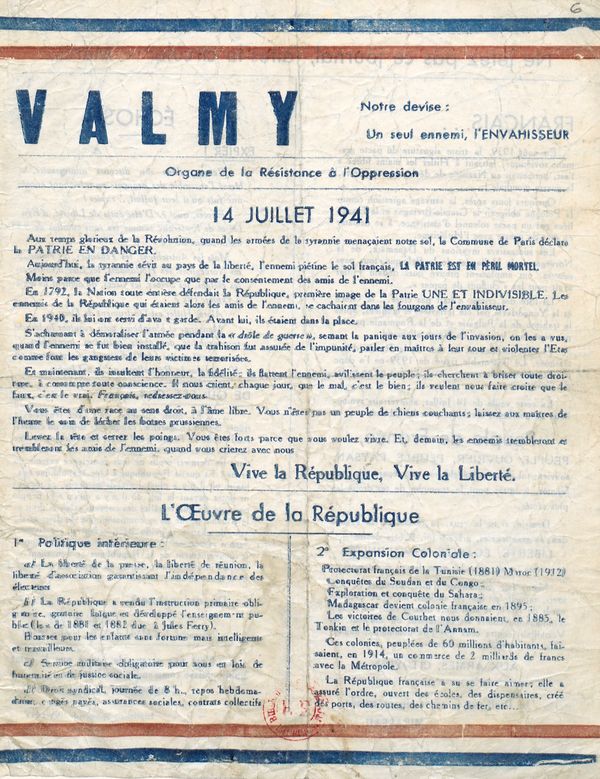 Publiée parfois sous forme des feuilles volantes dactylographiées comme le Valmy, organe de la Résistance française, la Défense de la France, ou encore le Libre France , parfois sous forme des simples billets d’opinion comme Œil pour œil, dent pour dent, ou des bulletins d’information comme L’Arc, ou encore l’emblématique journal Combat, ces publications rappellent le sursaut démocratique des citoyens engagés. Preuve s’il en est, cette presse bénéficie des tirages exceptionnels à l’issue du conflit passant de quelques exemplaire natifs à des milliers d’exemplaires par tirage.