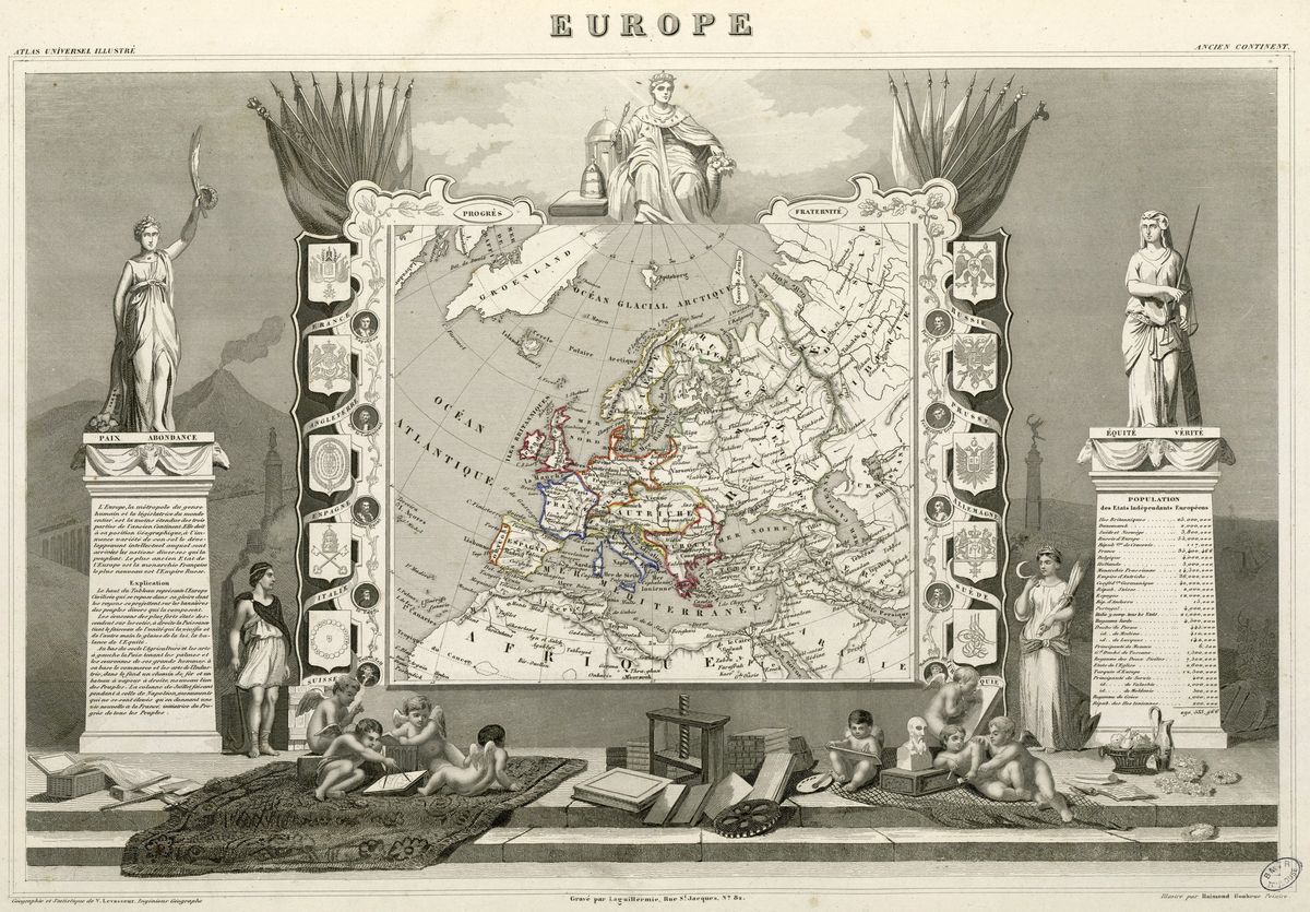 Cette section explore l’Europe à travers des cartes anciennes, des images et des photographies qui révèlent sa géographie, son urbanisme et ses paysages au fil des siècles. Des cartes générales aux représentations détaillées par pays, en passant par les vues de la Société de géographie et les affiches publicitaires, vous découvrirez l’Europe vue de l’intérieur et de l’extérieur.