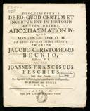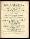 - Beck, Jakob Christophgeb. 1. März 1711; gest. 17. Mai 1785- Schediasma De Partibus Orbis, Quas Ante Diluvium Noachicum Homines Incoluisse VideanturBasileae : Typis Viduæ Johannis Conradi à Mechel, [1739?]e-rara- Disquisitionis De Eo, Quod Certum Et Incertum Est In Historiis Antiquioribus Apospasmation IVBasileæ : Typis Joh. Conradi à Mechel Viduæ, [1740?]e-rara- Meditationis Subitaneæ De Fide Hominis Christiani Sectio PriorBasileæ : Typis Viduæ Joh. Conradi à Mechel, [1740?]e-rara