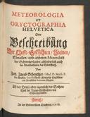 3 : Meteorologia et oryctographia Helvetica, oder, Beschreibung der Lufft-Geschichten, Steinen, Metallen und anderen Mineralien des Schweitzerlands, absonderlich auch der Uberbleibselen der SündfluthZürich : in der Bodmerischen Truckerey, 1718e-rara