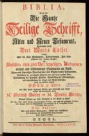 inhaltendt herrliche schöne Historien allerleÿ alten und newen Exempel, darauss menniglich zu vernemmen, beyde was recht ehrliche, dargegen auch was unordentliche Bulerische Lieb sey, ... auffs new zugericht, und in Truck geben, dergleichen vor nie gesehenFranckfurt am Mayn : in Verlegung Sigmund Carln Feyerabendts, 1587e-raraBiblia das ist: Die gantze heilige Schrifft