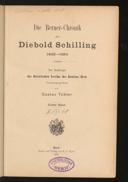 Schilling, Diebold < der Ältere > [1430-1486] ; Büchi, Albert [1864-1930] (Hrsg.) ; Tobler, Gustav [1855-1921] (Hrsg.) ; Historischer Verein des Kantons BernIn: Die Berner-Chronik des Diebold Schilling : 1468-1484 / im Auftrage des historischen Vereins des Kantons Bern herausgegeben von Gustav Tobler, (1897-)Bern : Druck und Verlag von K.J. Wyss, 1897-1901e-raraAdolf III., Holstein, Graf