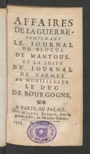 contenant le journal du blocus de Mantoue, et la suite du journal de l'armée de monseigneur le duc de BourgogneA Paris : chez Michel Brunet, MDCCII [1702]e-raraTome V